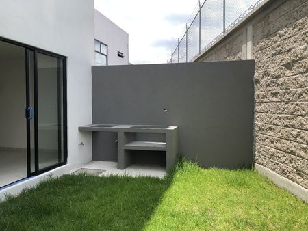 P.B. - Recibidor, - Sala - Comedor con concepto abierto, - Cocina equipada con Isla, - Jardín trasero con área para parrilla, - Cuarto de lavado con instalación para lavadora y secadora, - Baño de visitas - Bodega, - Escalera de madera de pino, - Estacionamiento para 2 autos.