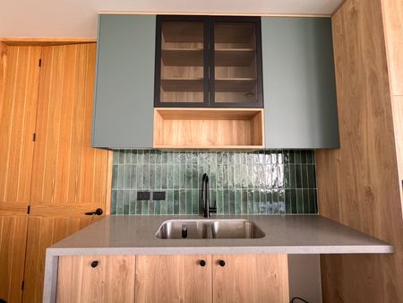 Cocina integral con barra tipo isla, alacena, estufa y horno incluidos