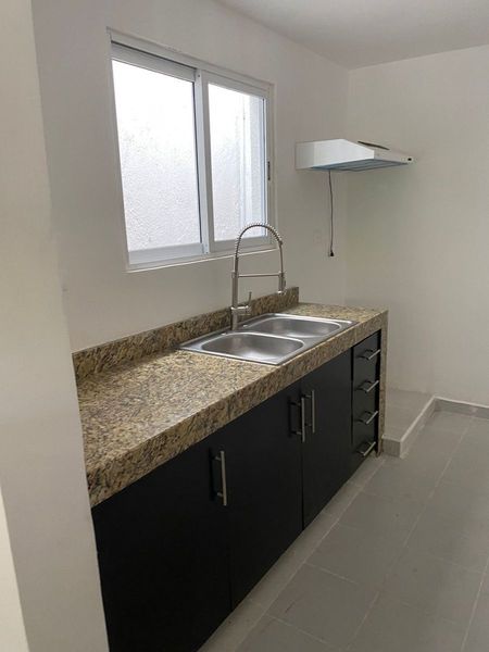 • Cocina equipada con gavetas, granito, campana extractora y tarja doble.