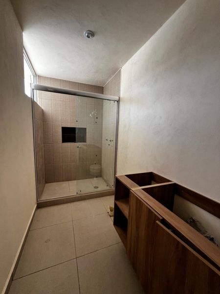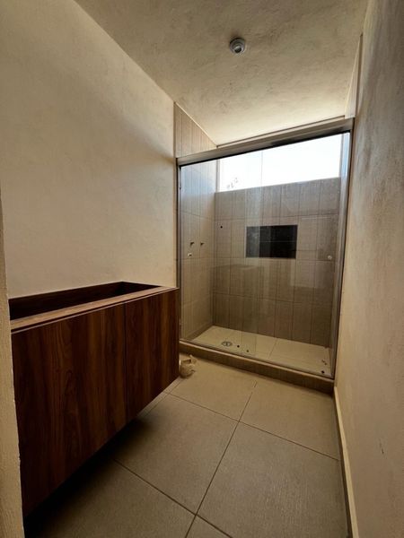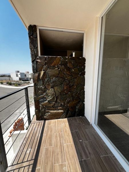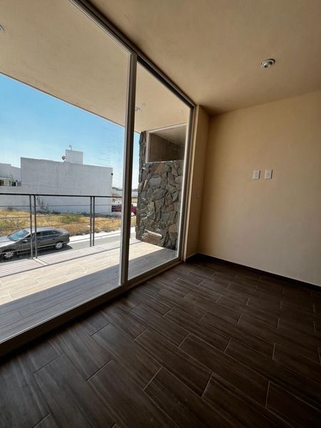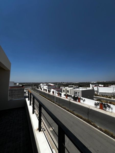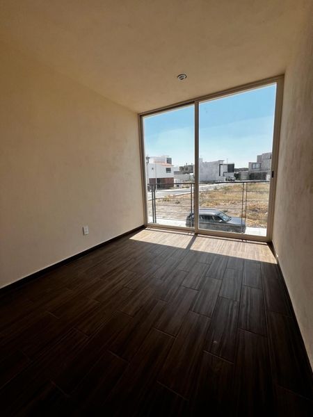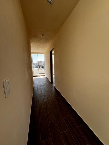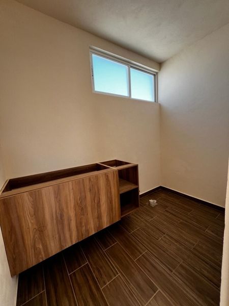Cochera para 2 autos, cocina abierta amplia con isla de granito, alacenas en alto brillo, sala comedor, medio de baño de visitas con mueble de baño y plancha de mármol, Patio.