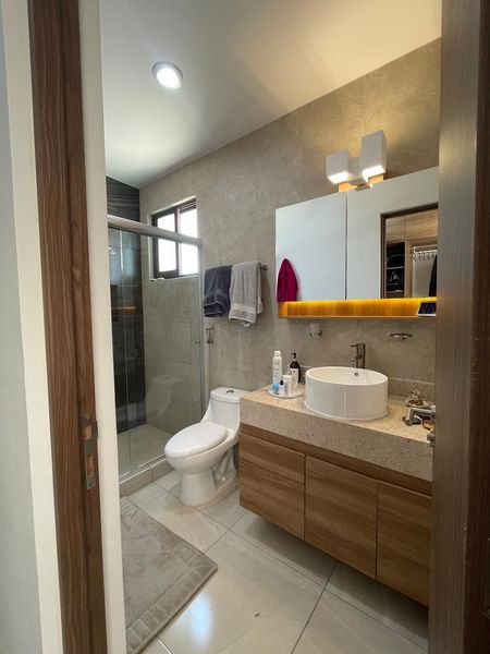 Hermosa Casa, con Doble Terraza en Roof Garden, 3 recámaras con opción a 4ta, 4 BAÑOS (3 baños completos y 1 medio baño), excedente de patio, acabados de lujo, amenidades premium con alberca infinity, gimnasio, salón de usos múltiples y cuarto de juegos! PRIVADA CON SOLO 100 CASAS!!! SEMINUEVA, SE USABA SOLO OCASIONALMENTE DOS AÑOS DE EDAD!!