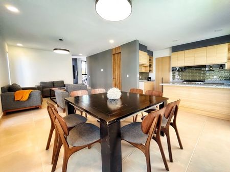 4 habitaciones, 3.5 baños, sala de TV, estudio o sala de juegos y Roof garden.
