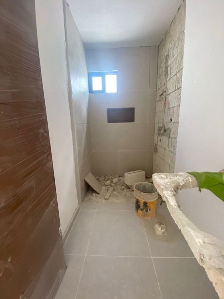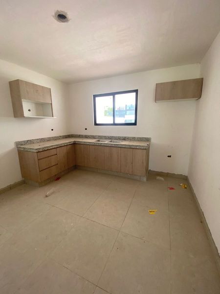 techada con piso de concreto estampado, cocina integral con meseta de granito, canceles en baños.