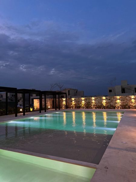 Casa en VENTA de 1 PLANTA, con dos recamaras, piscina, cochera para dos autos y terraza, dentro de una privada con amenidades.
