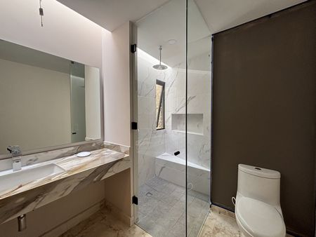 En sus acabados sobresalen los PISOS DE MÁRMOL, lavamanos Kohler, grifería Helvex, plafones con luz indirecta, carpintería de madera y cubierta de granito Kosmus. EQUIPAMIENTO