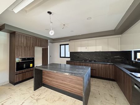 La COCINA DE DISEÑADOR con isla central, equipada con parrilla, campana, hornos y lavavajillas, destaca por su elegancia y funcionalidad. Incluye además JARDÍN INTERIOR, ESTUDIO, BODEGA, ÁREA DE LAVADO y CUARTO DE SERVICIO.