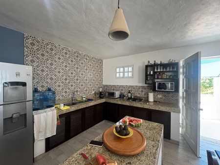 Casa en venta en Telchac puerto ubicada en esquina, la propiedad por el amplio terreno da a doble calle y se encuentra a a una cuadra de la playa con fácil acceso.