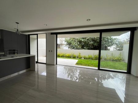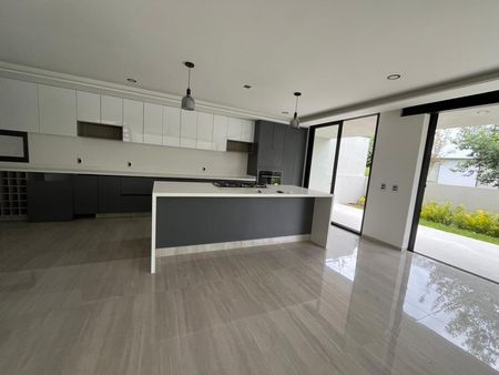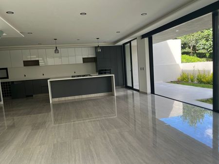 La casa está equipada con acabados premium: barra y cubiertas de granito, mármol en baños, cristal templado, iluminación LED, cisterna de 5,000 litros con hidroneumático, contactos USB, horno, parrilla, campana y preparación para lavavajillas.
