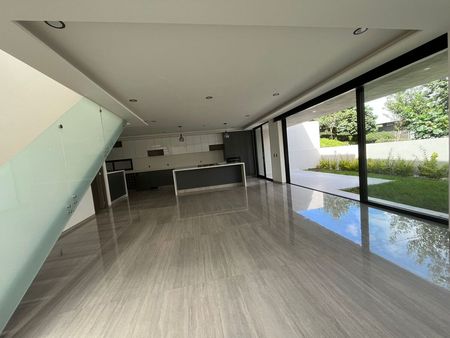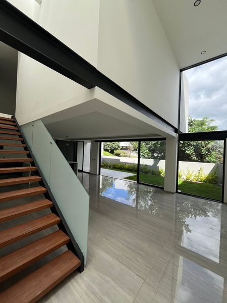 En planta baja encontrarás un elegante vestíbulo y sala con doble altura, comedor, cocina moderna con isla y alacena, cava/bar, jardín posterior con terraza de 60 m², amplio estudio (opción a 4ª recámara con baño completo), baño de visitas, área de lavado, bodega, pasillo de servicio y estacionamiento para 3 autos.