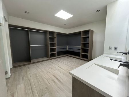En la planta alta, la recámara principal te ofrece un amplio espacio con sala privada, balcón, vestidor de gran tamaño y baño de lujo. Además, cuenta con sala de TV y dos recámaras secundarias, cada una con vestidor y baño, compartiendo un balcón.