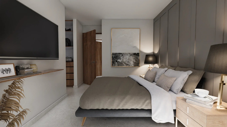 Recámara principal con walk-in clóset y baño completo
