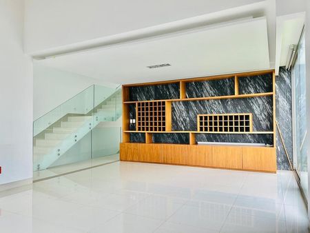 Recámara principal con terraza, baño con doble tarja y amplio walk-in closet. Segunda recámara con closet y baño propio. Family room con baño completo, que puede adaptarse como tercera recámara o estudio, y área de lavado adicional.
