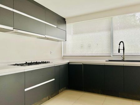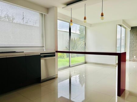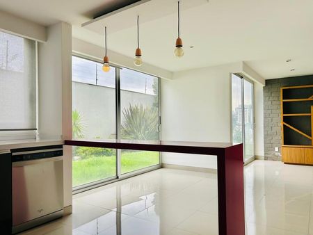 Desayunador, cocina abierta estilo americano, baño de visitas, sala y comedor con salida al jardín, área de lavado y cuarto de servicio.