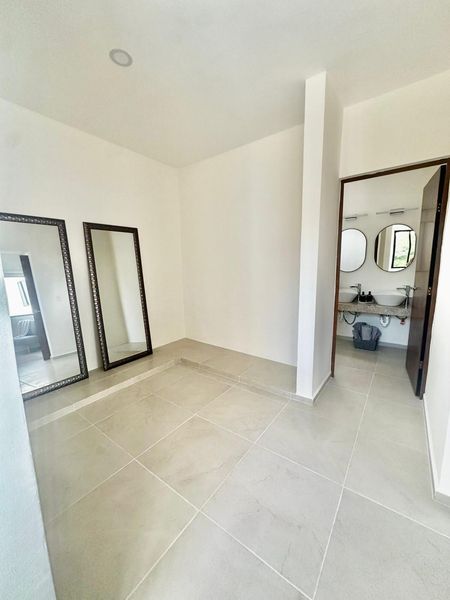 Recámara principal con clóset vestidor y baño completo.