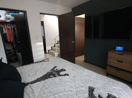 Cuenta con 70 m² de terreno y 99 m² de construcción en tres niveles con roof garden. En planta baja ofrece sala, comedor, cocina, estudio o recámara, baño completo, patio y cochera para dos autos. En el primer piso se encuentran dos recámaras, cada una con baño completo; la principal con clóset amplio y balcón. En el segundo piso, roof garden techado con área de asador, área de lavado privada y medio baño.