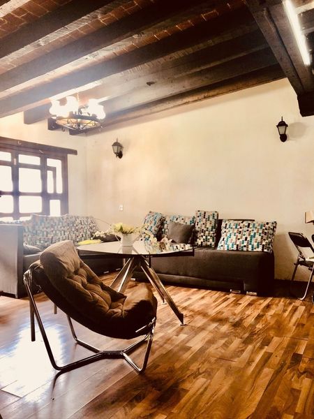 Combina el Estilo Colonial Mexicano y Rústico.