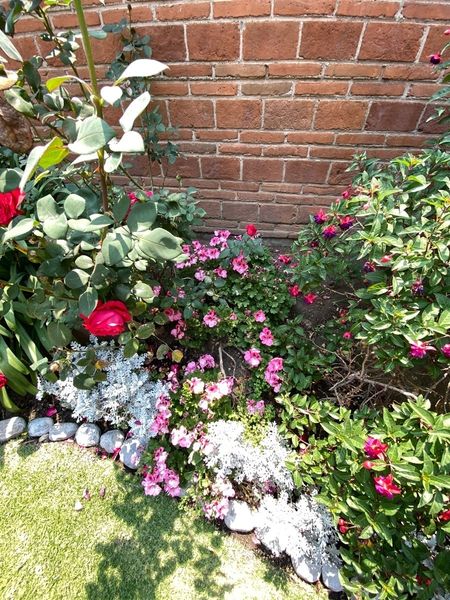 Barda de ladrillo muy bella y plantas decorativas