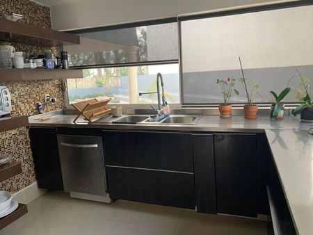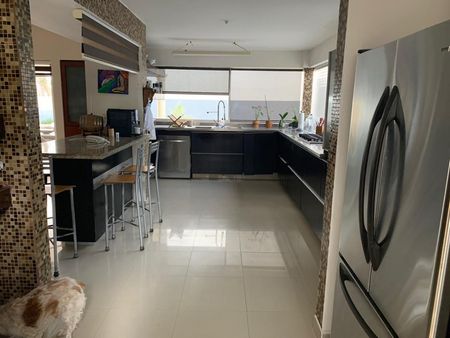 Cuenta con 3 recámaras principal con terraza, 3 baños completos, sala comedor, cocina integral con barra y acabados de granito, desayunador, jardín frontal y garage para 2 autos.
