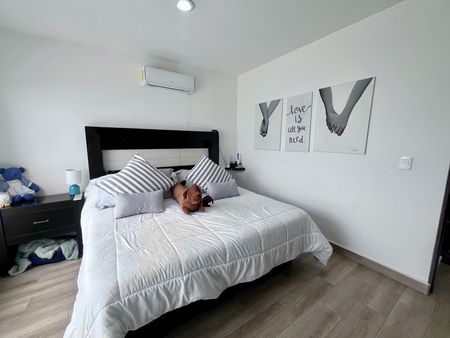 En segundo nivel encontramos recámara principal con vestidor y baño propio más dos amplias recámaras secundarias y otro baño completo. Equipada con persianas, mosquiteros, A/C en recámara principal más preparaciones para otras áreas, canceles de vidrio templado y hasta puerta para tus mascotas!