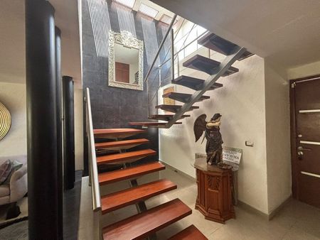 Escaleras para el acceso a planta alta, donde se encuentra la habitación principal con vestidor y baño completo.