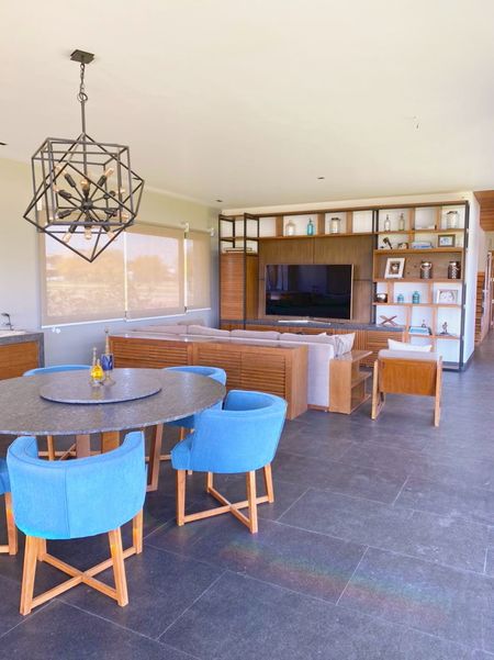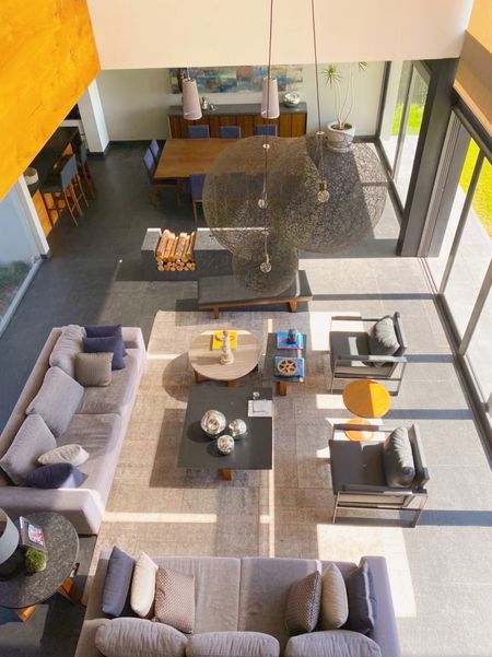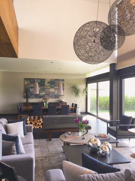 Sala y Comedor: Espacios amplios con dobles alturas que realzan la iluminación natural y la sensación de amplitud.