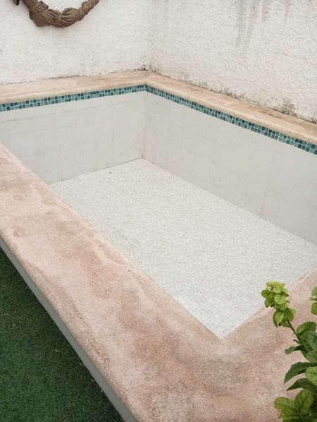 Mosaico , tiene pozo de llenado y desagüe, bomba para aspirar.