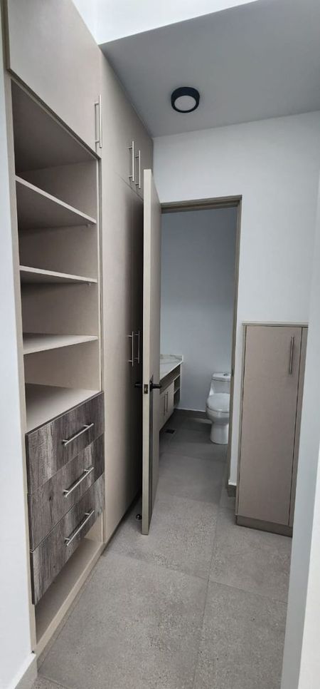 En planta alta: vestíbulo, sala de T.V., recámara principal con baño/ vestidor, 2 recámaras secundarias con baño compartido y clóset de blancos. Cuenta con pasillo de servicio, aislando el tráfico de personas desde el acceso principal hasta el jardín por dentro de la casa.