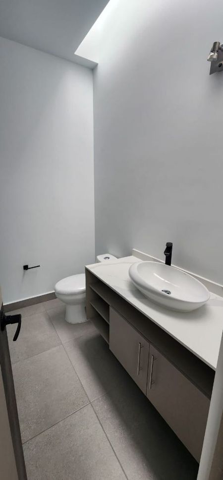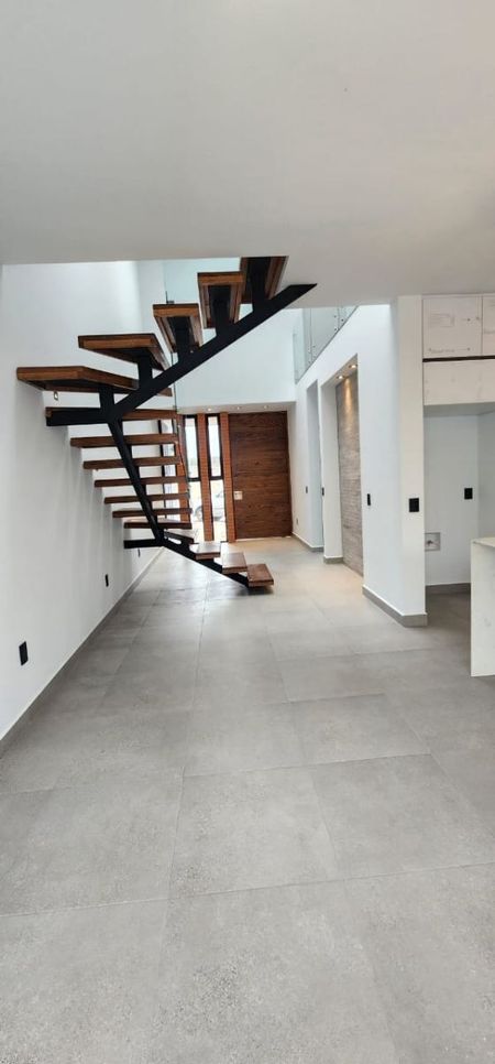 Venta de casa en el Marques Querétaro. Esta propiedad con estilo contemporáneo ofrece en planta baja: Recibidor, sala, estudio/alcoba, cocina, comerdor, cuarto de lavado, baño y escalera.