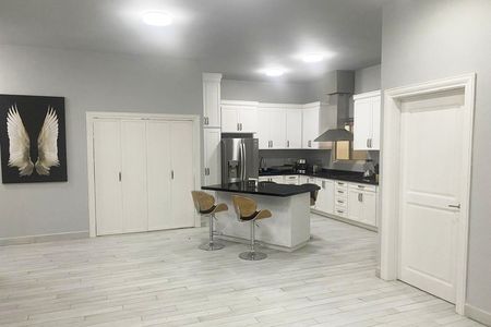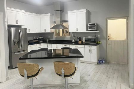 Casa de 1 sola planta. Cochera techada para 2 autos, puerta de seguridad, área abierta de sala, comedor y cocina con piedra de granito y lavandería, las puertas interiores son de banak y sistema de calefacción de la chimenea, 2 recámaras, la principal con walking closet y baño completo, la recámara secundaria comparte baño con área de visitas.