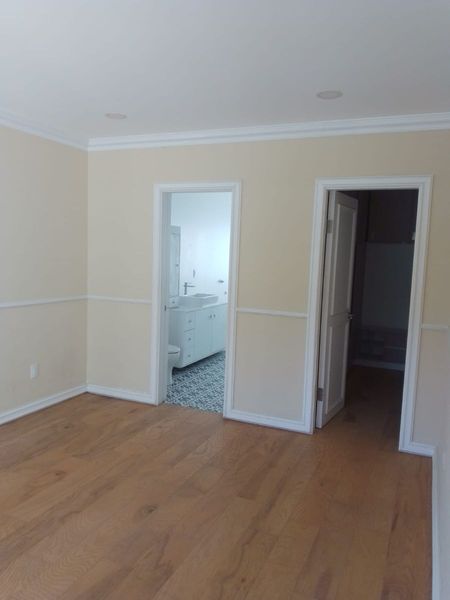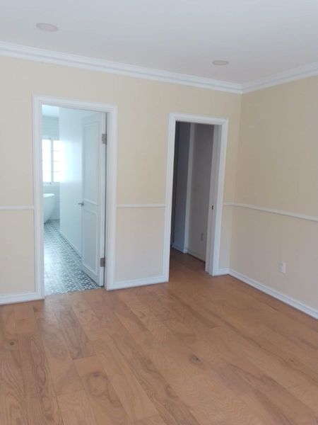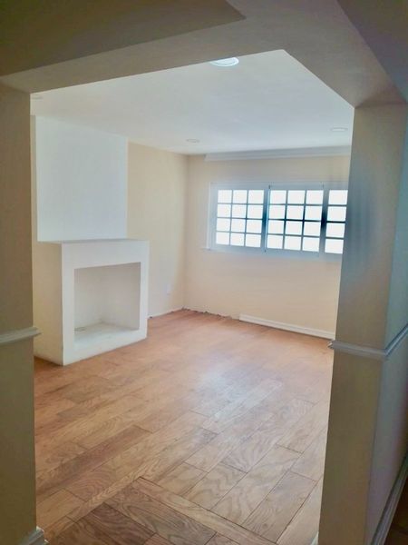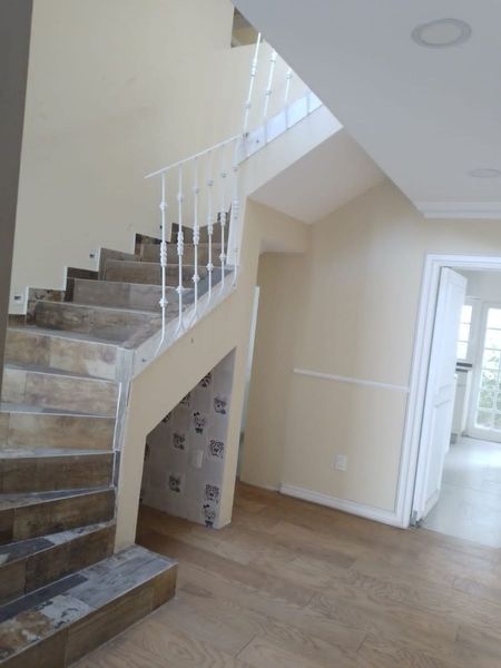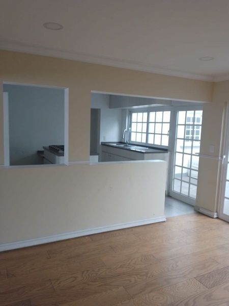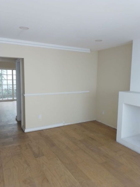 1er piso: pequeño jardín al frente, lugar de estacionamiento para 3 autos, 1 cuarto/bodega, espacio grande para sala, baño, espacio grande para comedor con ventanal hacia patio trasero, cocina integral equipada con estufa, patio trasero con piso de cerámica y tina de hidromasaje, pisos de madera. En la parte trasera de la casa, pequeño espacio de lavado con fregadero y 1 baño completo.