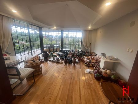AL INGRESAR POR LA CASETA DE VIGILANCIA, SE DESCIENDE POR UNAS ESCALERAS QUE CONDUCEN A LA ENTRADA PRINCIPAL, DONDE SE ENCUENTRA UNA ACOGEDORA SALA Y COMEDOR CON PISOS Y DETALLES EN MADERA, LLENOS DE LUZ NATURAL. LA COCINA CUENTA CON UNA PRÁCTICA DISTRIBUCIÓN Y SE CONECTA CON UNA TERRAZA CON VISTA ARBOLADA, IDEAL PARA DISFRUTAR LA TRANQUILIDAD DEL ENTORNO. EN ESTE NIVEL TAMBIÉN HAY UN BAÑO DE VISITAS Y CUARTO DE SERVICIO INDEPENDIENTE.