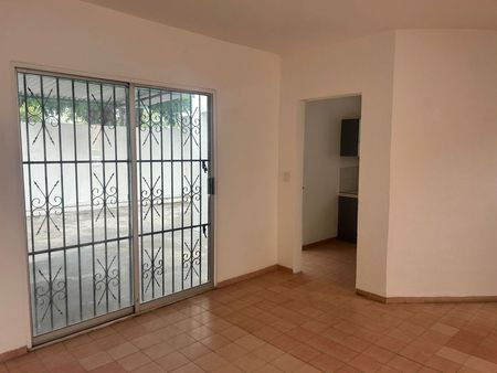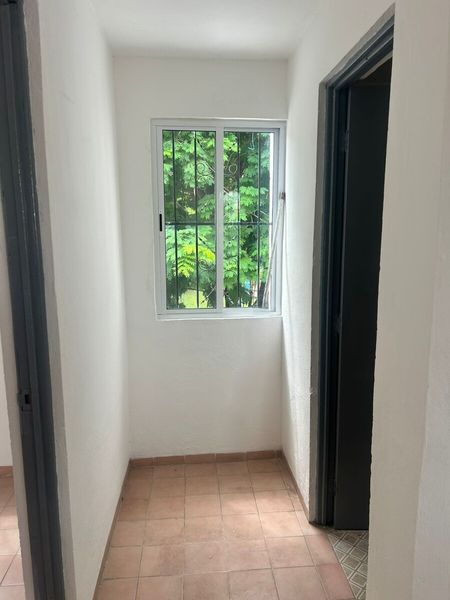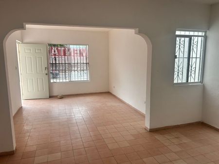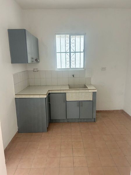 Con piezas de sala, comedor, cocina y un medio baño, detrás tiene un patio totalmente bardeado a 2.05Mtrs, todo el piso de concreto, un espacio de lavado techado y un espacio del garaje amplio y la reja perimetral a 1.20mtrs todo el frente.