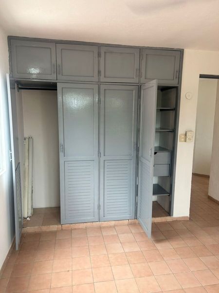 Dos recamaras con closet vestido de madera, pasillo y un baño completo.
