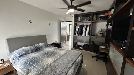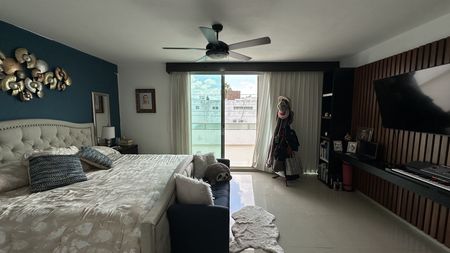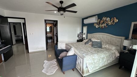 - Habitación secundaria con baño propio, closet vestidor y balcón con vista a la piscina.