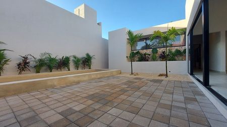 Casa de una planta dentro de privada Canarias Conkal con 68 lotes y amenidades de areas verdes, cancha de padel, basquet y area de grill para reuniones