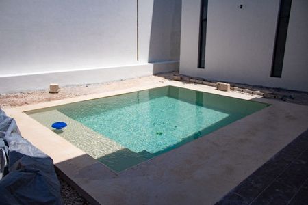 Cochera, pasillo de servicio, 1/2 baño de vistas, Sala, Comedor, Cocina, area de lavado, terraza techada, Recámara principal, alberca.