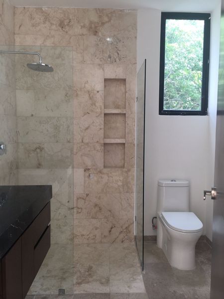 - Mesetas de baño con mármol, y muebles bajo cubierta.