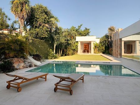La recámara principal cuenta con jacuzzi, regaderas / sauna doble lavado y vistas al jardín