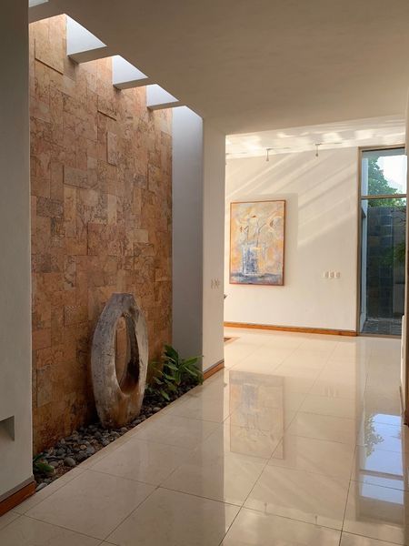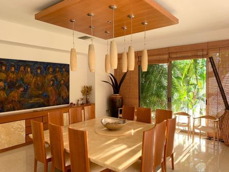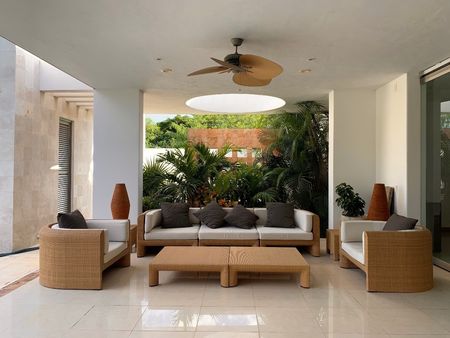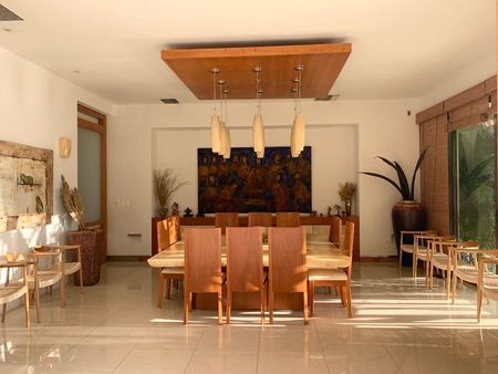 Área social cerrada y climatizada, pero con la capacidad de abrirse y quedar al aire libre con bar y espacio de sala con vista al jardín y entrada principal