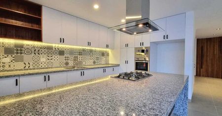 - Cocina con cubierta de Granito (Parrilla en Isla y Horno de gas separado )