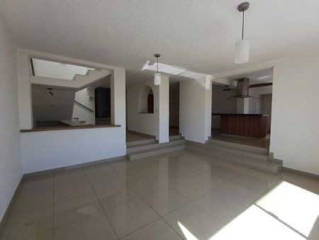 Cuenta con 3 niveles. En nivel de calle cuenta con cochera para 3 autos con portones automatizados, bodega, cisterna de 5000 lt, pasillo lateral hasta el jardín. Recibidor, sala, comedor, medio baño, cocina moderna, equipada con barra de granito y de cuarzo, lavavajillas, doble tarja y gran alacena.