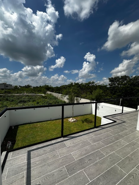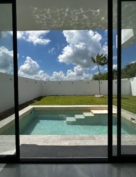 - Alberca de 3 mts de ancho, 5 mts de largo y profundidad de 1.5 mts. Cuenta con desnatadora, bomba y filtro.