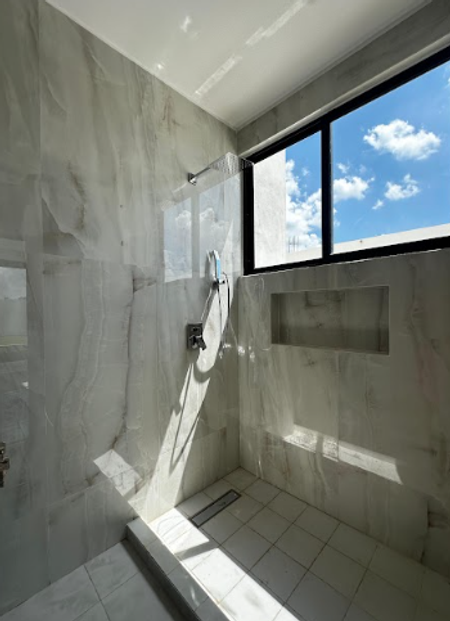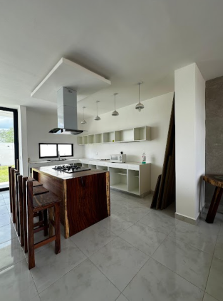 - Cocina equipada con tarja y llave de teléfono, campana, isla y estufa empotrada de seis quemadores