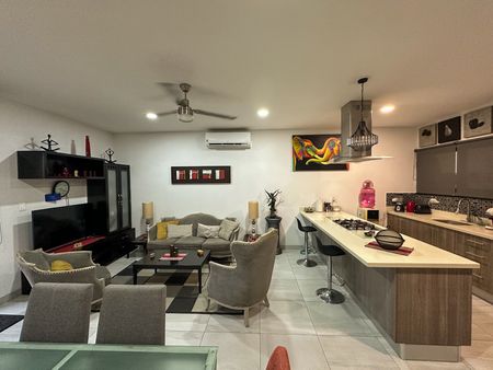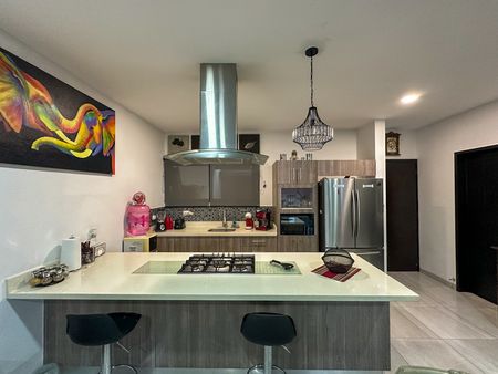 * Cocina equipada con barra desayunadora y carpintería de alta calidad.