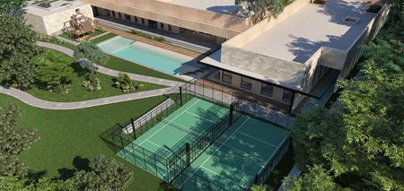 AMENIDADES: Recepción, biblioteca, coworking, gimnasio, bar, ludoteca, canal de nado, cancha de pádel, alberca.