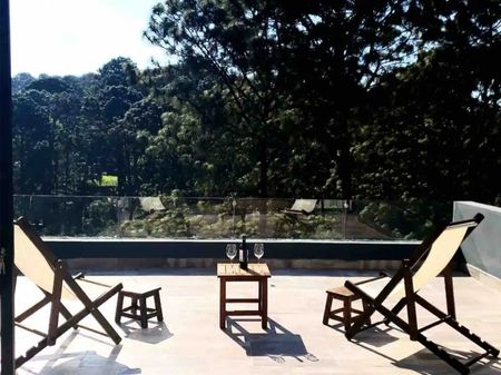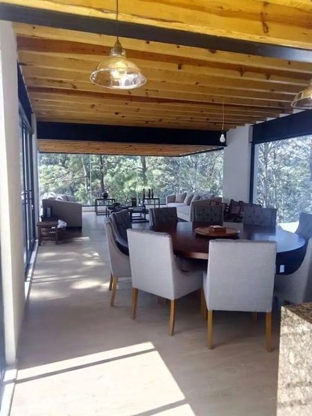 Increible casa de campo en condominio, rodeada de bosque con río y cascada que dan armonía a tu estadía , todas las comodidades: cuenta con sala de tv, tres recamaras, cuarto de servicio, cuarto de lavado 2 terrazas, jacuzzi, asador weber.