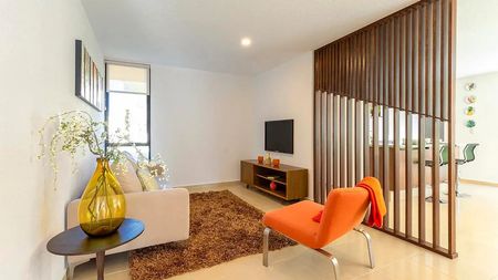 - Área de entretenimiento: Alberca, gimnasio y salón de usos múltiples, perfectos para relajarte y socializar.