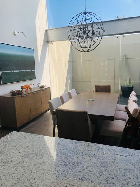 La casa se encuentra en fraccionamiento cerrado, con vigilancia, en frente al parque con juegos. No tiene vecino al frente ni al lado. 3.5 Baños, estacionamiento para dos autos no techados, en esquina. Jardín posterior. Cisterna de 5000 Lt.
