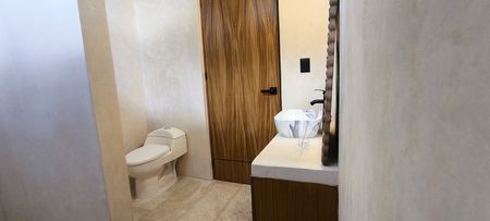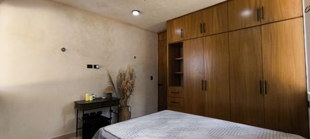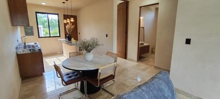 Las viviendas cuentan con ALTURA INTERIOR DE 2.80 M, pisos de MÁRMOL TRAVERTINO, muros con acabado de CHUKÚM, cocina con BARRA DESAYUNADORA y BARDAS PERIMETRALES.
