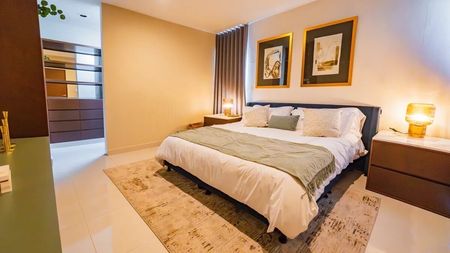 Recámara principal con clóset vestidor, baño completo y balcón.